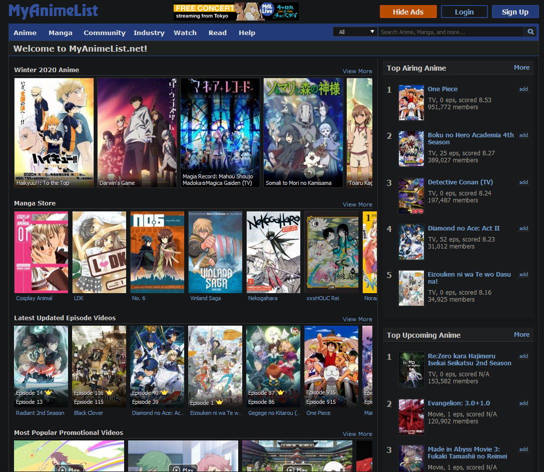 MyAnimeList rankings.